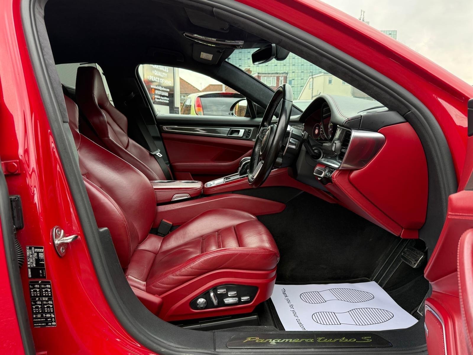 This 2017 Porsche Panamera V8 E Hybrid Turbo S is a remarkable example of performance and innovation. Finished in a striking colour and boasting a powerful 4.0L Petrol Plug-in Hybrid engine, this four wheel drive model meets Euro 6 emissions standards. Inside, you'll find a host of premium features designed to enhance your driving experience, including Porsche Rear Seat Entertainment with Bluetooth connectivity, Night View Assist for improved visibility, and a truly immersive Bose Surround Sound System. For your entertainment needs, a six disc CD DVD autochanger is also included, and the Sport Chrono stopwatch instrument dial in Bordeaux Red adds a touch of distinctive style.Is have Ceramic Brake also .Is have over 30k of optional extrases. The Panamera Turbo S offers an exhilarating drive, achieving 0 to 62mph in a swift 3.4 seconds, a testament to its advanced engineering and a clear indicator of its superior performance compared to many other vehicles in its class. This impressive acceleration is complemented by generous boot space, making it as practical as it is powerful. This combination of blistering speed, sophisticated technology, and everyday usability makes this Porsche Panamera a truly exceptional choice. Px welcome 6 Months warranty We accept all major debit credit cards payments We offer delivery everywhere in Uk for competitve prices Don t put off because of category ,car had a light damage,was fixed only with main dealer parts 1 year bodywork warranty included -