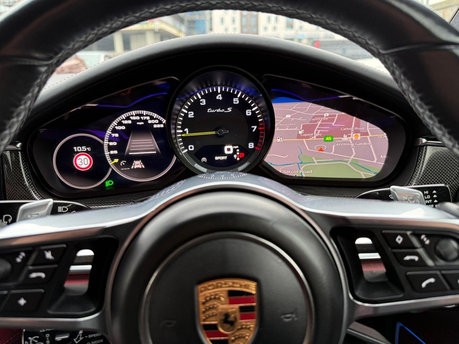 - Central Analogue Rev Counter with Black Dial Faces and Turbo S Logo